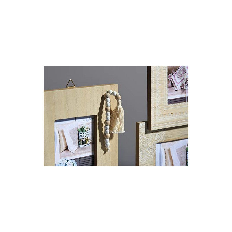- Natural, wide wooden profile with filigree pattern and pearl appliqué