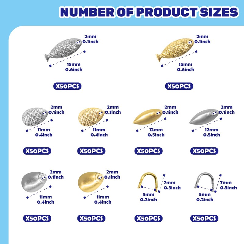 - [Various Style for Choice] You will get 400pcs spinner blades in different colors and sizes (5x12mm/7x11mm/8x11mm/6x13mm), 300pcs U-Shaped Brass Links in silver and gold, totally 700pcs. Please refer to the second picture for size detail before purchasing. Various shapes and large quantity can meet your various needs.