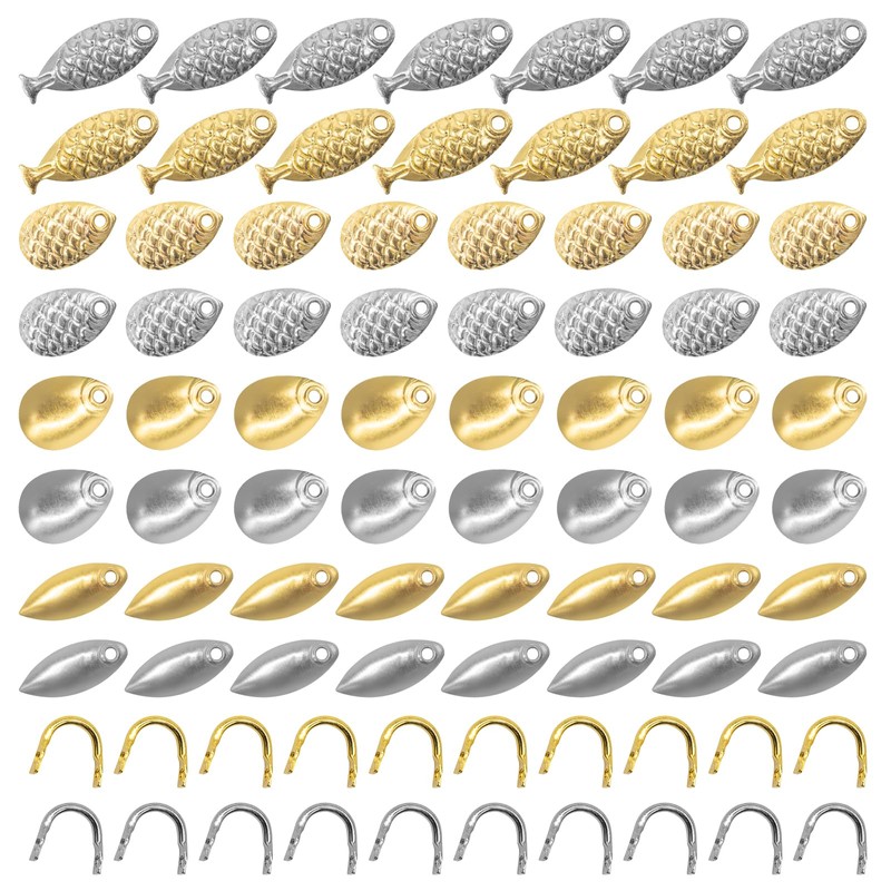 - [8 Style Spinner Blades] Made with copper and stainless steel with premium electroplated gold or silver coating fishing blade, which have strong corrosion resistance even after repeatedly using in saltwater and freshwater fishing. The fishing blades bring higher reflection rate that enhances your baits action to attract fish from greater distances.