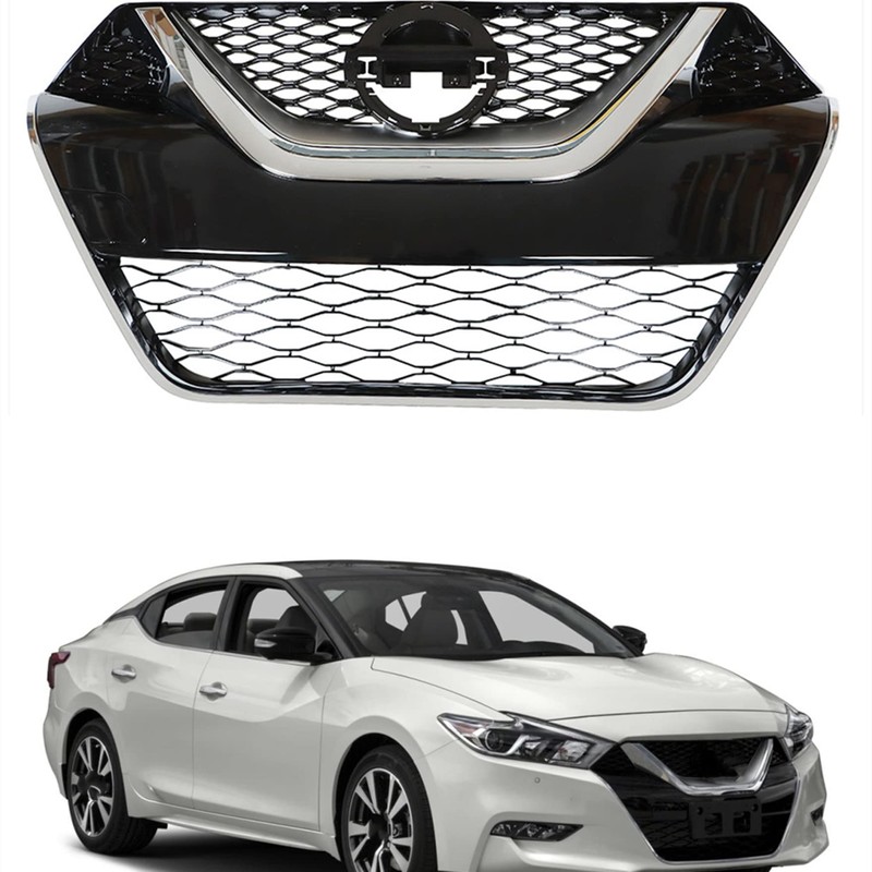 waltyotur Black Silver with Chrome Molding Grille Front Grille Assembly Replacement for Nissan Maxima 2016 2017