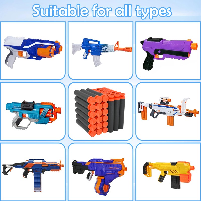 Compatibility: Works with all Nerf blasters that support Elite darts Featuring the original blaster tip designs, our foam bullets are exceptionally accurate, assuring that each shot counts during intense battles. The bright and colorful selection of darts not only adds a fun flair to your game but also helps in distinguishing your ammo during team play.