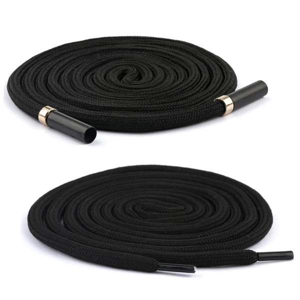 WALWAL 2 Pack 51 Inch Replacement Drawstrings Cotton Drawstring Cord, Suitable for Sweatpants Hoodies Shorts, with Threader Tool(Black,Cylindrical)
