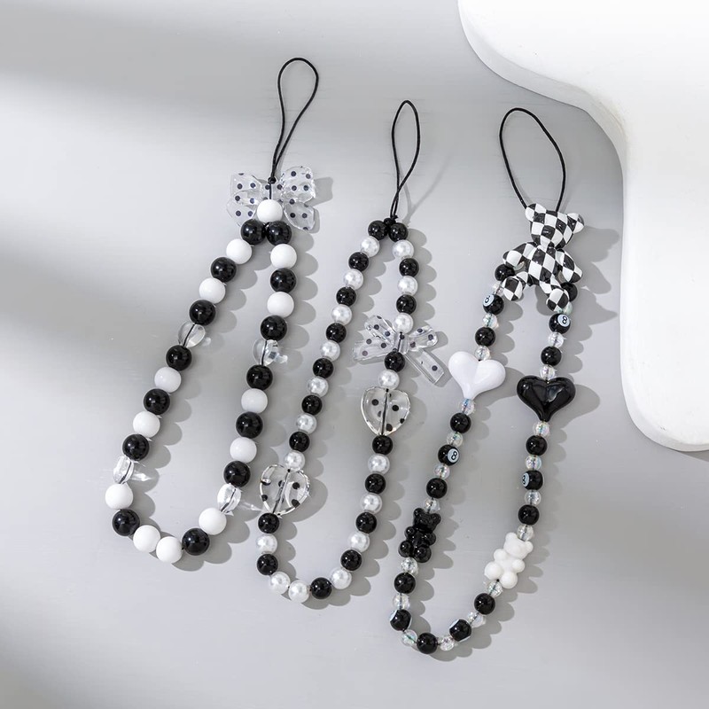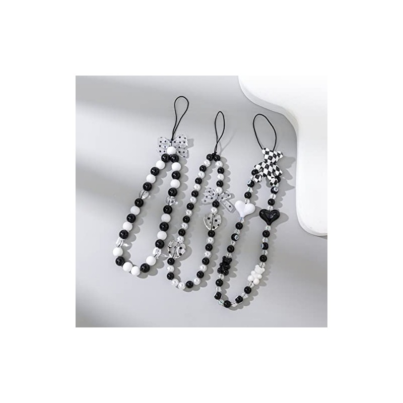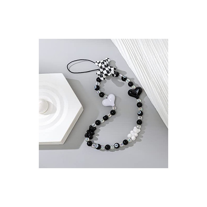 Wambere Mobile Phone Wrist Lanyard, Mobile Phone Chain, Short Mobile Phone Chain Made of Acrylic, Black and White Polka Dots Acrylic Phone Chain, Beads Phone Pendant Mobile Phone Strap, Chain Mobile