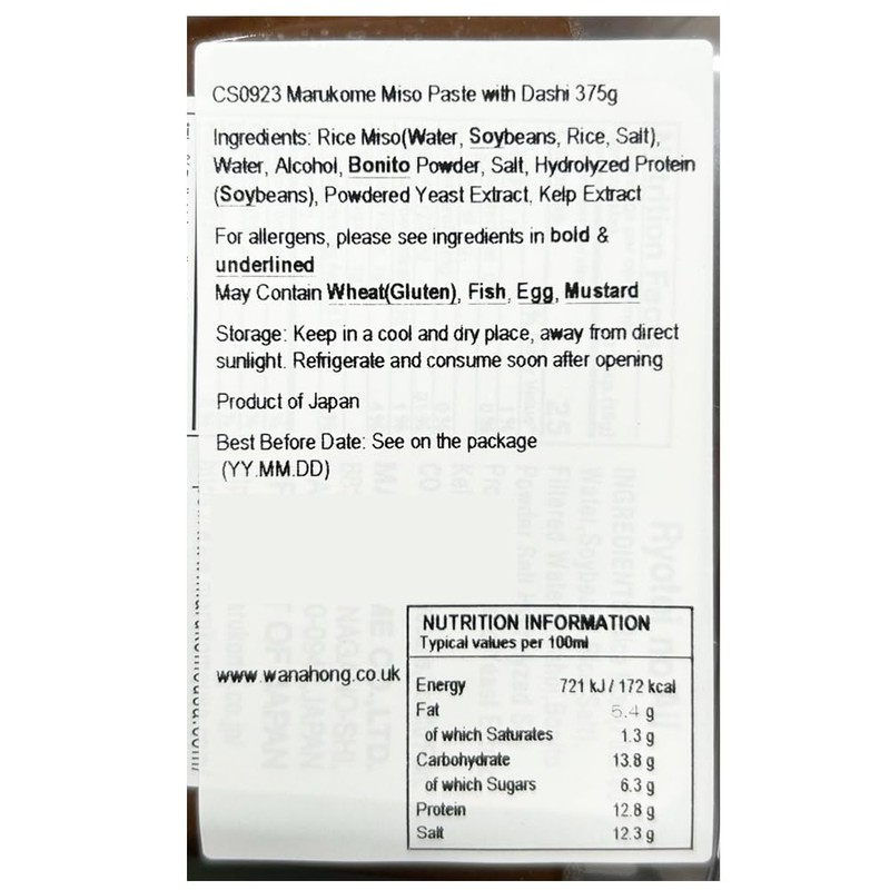 WaNaHong Marukome Miso Paste with Dashi 375g [Gluten Free]