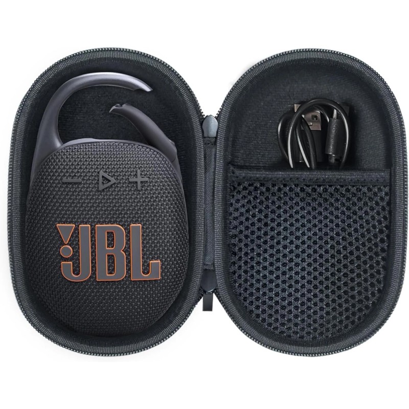 - Tailored for Convenience: Securely store and protect your JBL Clip 5 or JBL Clip5 wireless speaker in this durable hard case. Featuring internal elastic bands, this case firmly holds your JBL Bluetooth speaker in place while providing separate compartments for necessary cables and adapters, ensuring everything remains organized and easily accessible.