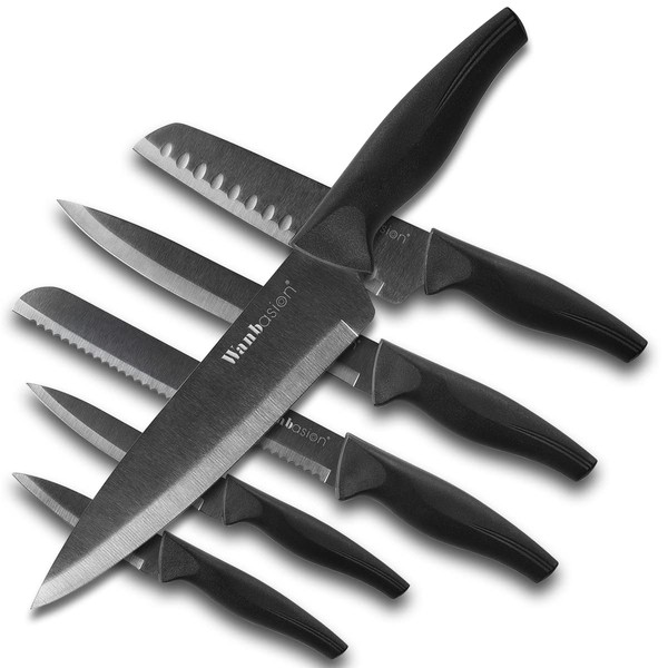 Wanbasion Black Professional Kitchen Knife Chef Set, Stainless Steel, Dishwasher Safe with Sheathes
