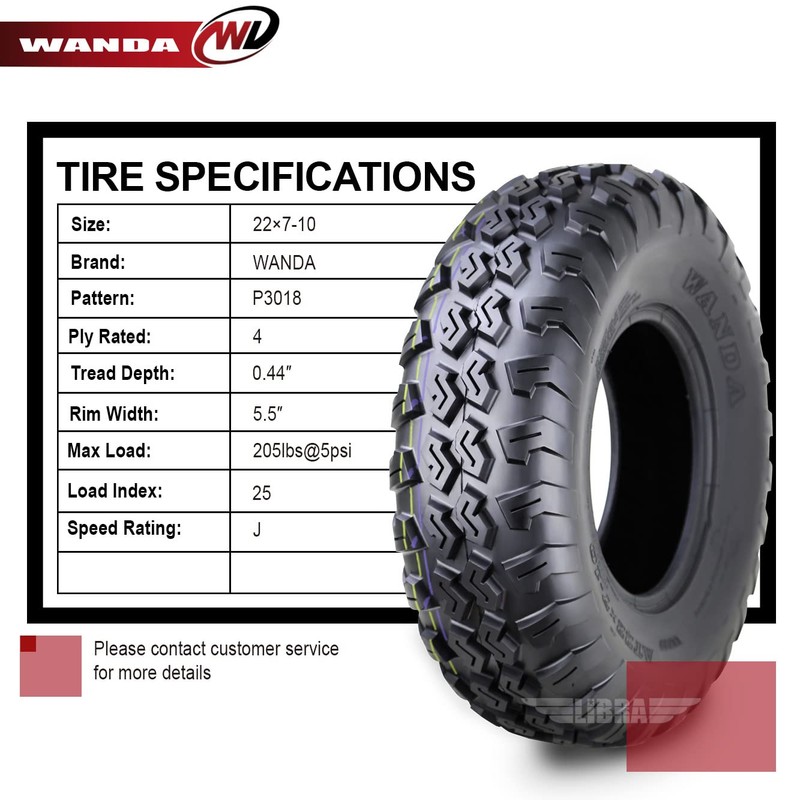 WANDA Set of 2 ATV UTV Tires 22x7-10 22x7-10 4PR