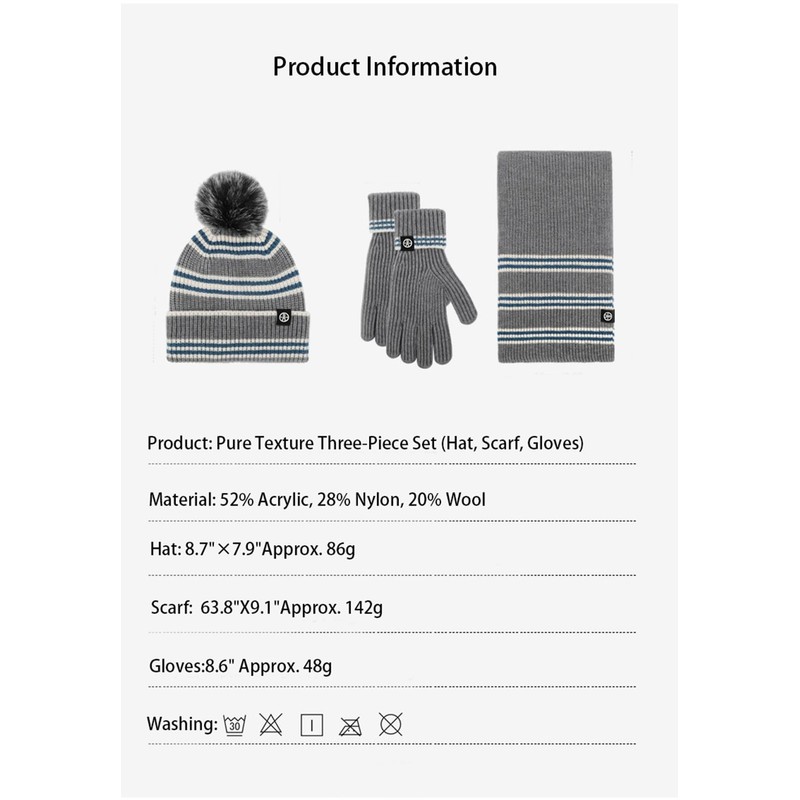 - 3-Sets: Hat Head sizes 19.6"~23.5",Scarf 63.8"X9.1",Gloves Length 8.6",elasticity is very good, suitable for most sizes.