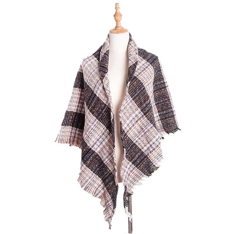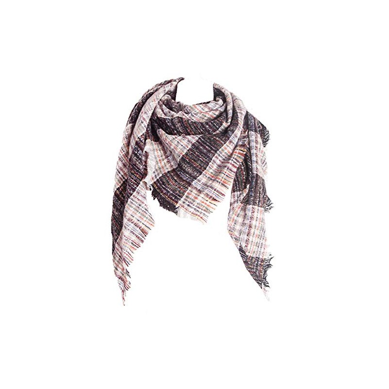 Wander Agio Womens Warm Scarf Triangle Shawls Scarves Fichu Rough Stripe Plaid White Medium