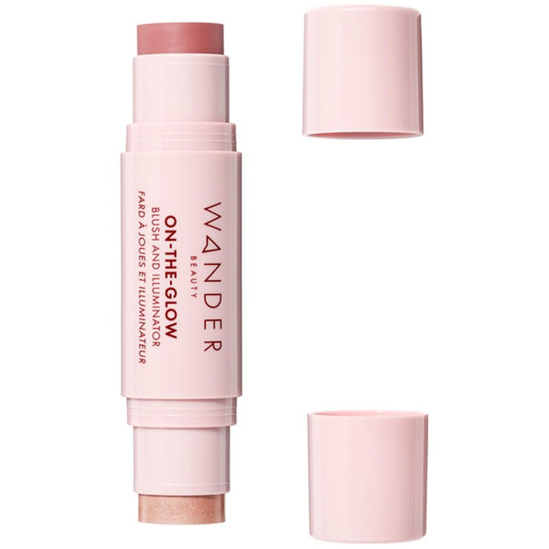Wander Beauty On-the-Glow Blush and Illuminator - Bare/Nude Glow - 7-in-1 Hydrating Cream Blush & Highlighting Stick - Stick Blush for Cheeks, Lip, Face & Body - Highlighter Makeup & Blush - 0.4 oz
