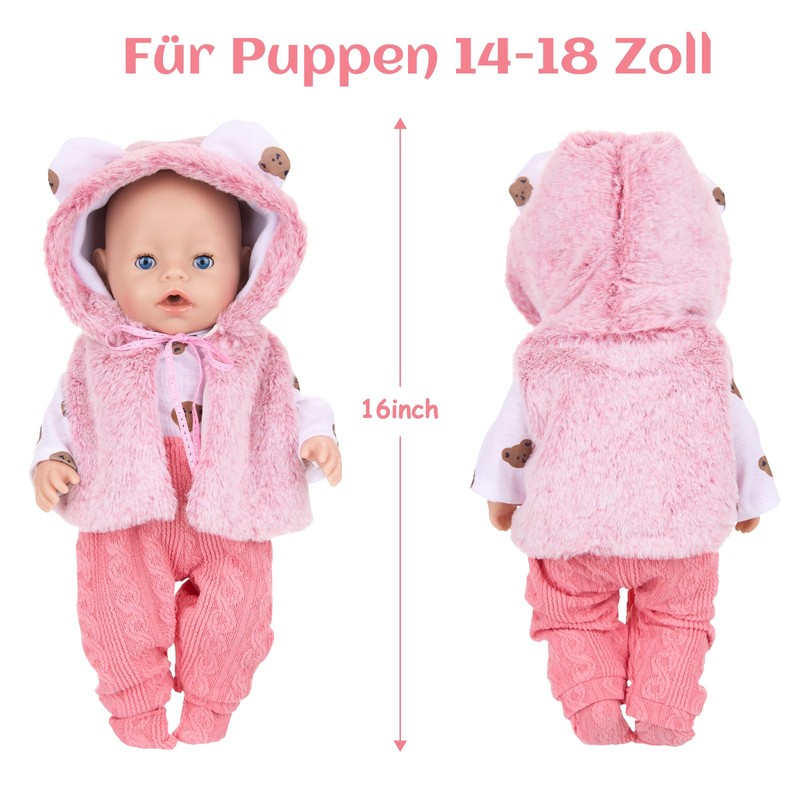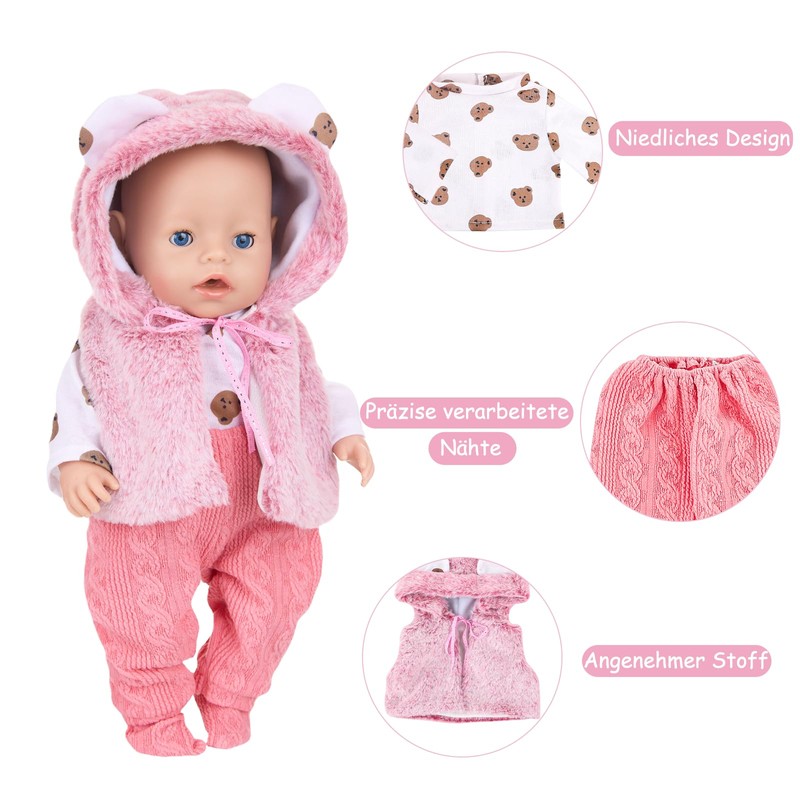 - 4-teiliges rosa Set mit süßem Bärenmotiv: Enthält 1 Top, 1 Hose, 1 Plüschweste, 1 Paar Söckchen--ideal für kreative Rollenspiele.