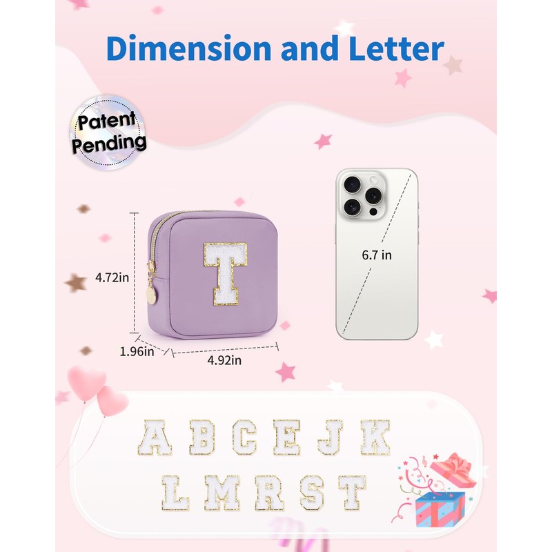 - 【Personalized Gift】This mini monogram makeup bag features eye-catching chenille initial patches with a gold glitter finish, giving it a chic and personalized touch. It’s the perfect gift for friends, loved ones,moms or anyone who loves exclusive, stylish accessories for special occasions like Valentine's Day, Mother's Day, birthdays, Christmas.