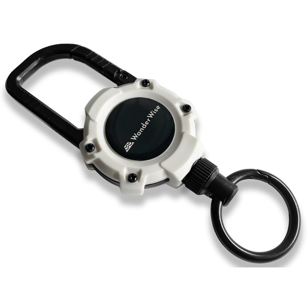 WanderWise Keychain, Reel, Carabiner, Keychain, Wire, Reel Keychain, white