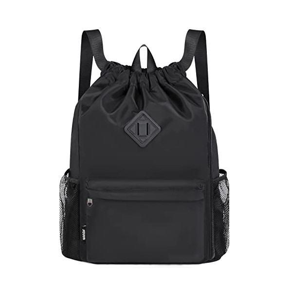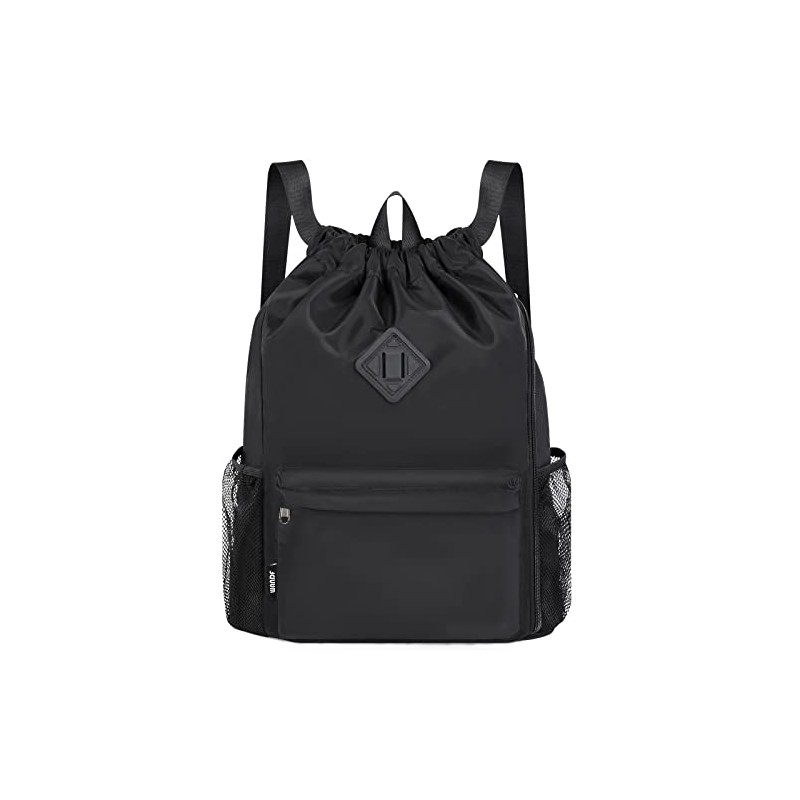WANDF Drawstring Backpack Sports Gym Bag with Shoes Compartment, Water-Resistant String Backpack Cinch for Women Men (Black)