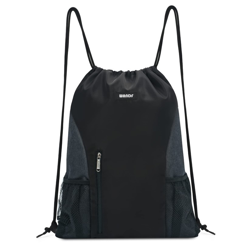 - LARGE CAPACITY--- WANDF drawstring backpack for men&women with large compartment measures 50 x 40 CM, which is big enough for basketball, gym clothing, sport towel, ipad, textbooks and daily supplies. Two mesh side pockets can be used to hold your water bottle and umbrella.