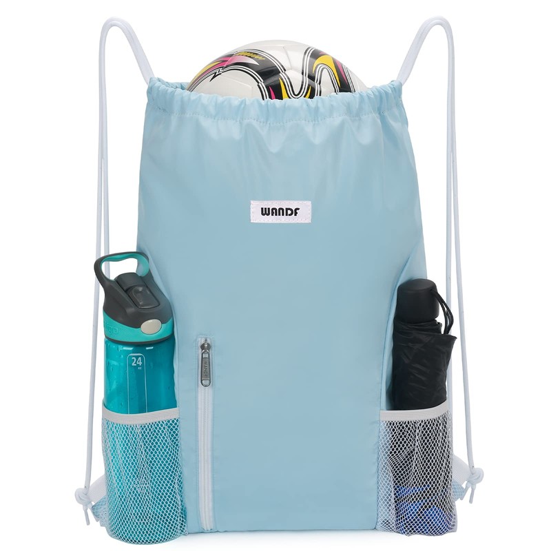 WANDF Gym Sack, Knapsack, Drawstring Bag, Shoe Storage, Waterproof, Lightweight, Swimming, Club Activities, Travel, etc, a-blue