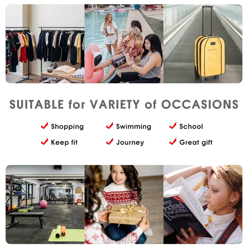 - Multi-functional: Folds up compactly for easy carrying. It can be used as a pool bag or shoe case for kids, as a sub-bag at the gym, camping, shopping, club activities, mountain climbing, traveling, etc