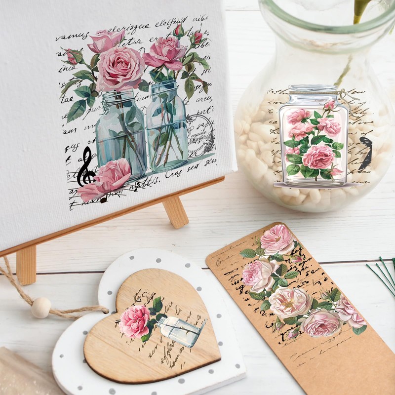 - MULTIPLE CHOICE: There are different patterns for the friction on the transfer sticker for you to choose from, including pink flower patterns, rose patterns, Mason Jar patterns. Enough quantity and styles for your needs and you can share them with your friends and family.