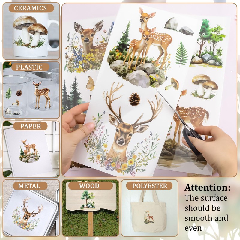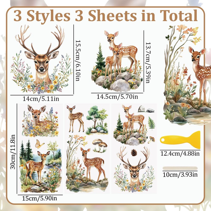 • Packaging Content:You will receive 3pcs little deer rub on transfer stickers in there styles.The product size is shown in the figure.