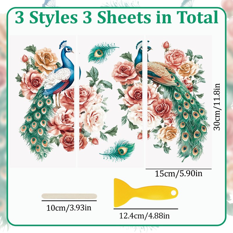 - Packaging Content:You will receive 3pcs peacock rub on transfer stickers in there styles.The product size is shown in the figure.