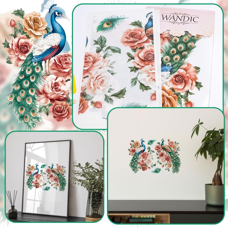 WANDIC 3 Pcs Rub on Transfer Stickers Peacock Pattern Decals Animals Rub on Stickers for DIY Scrapbooking Photo Albums Furnitures