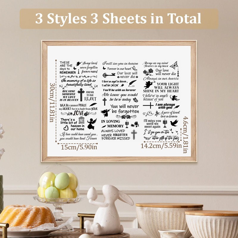 WANDIC 3 Sheets Memorial Word Inspiration Rub OnTransfer Stickers, Religion Cross Scrapbook Sticker Waterproof Sticker DIY Decals for Decoration, 15 x 30 cm