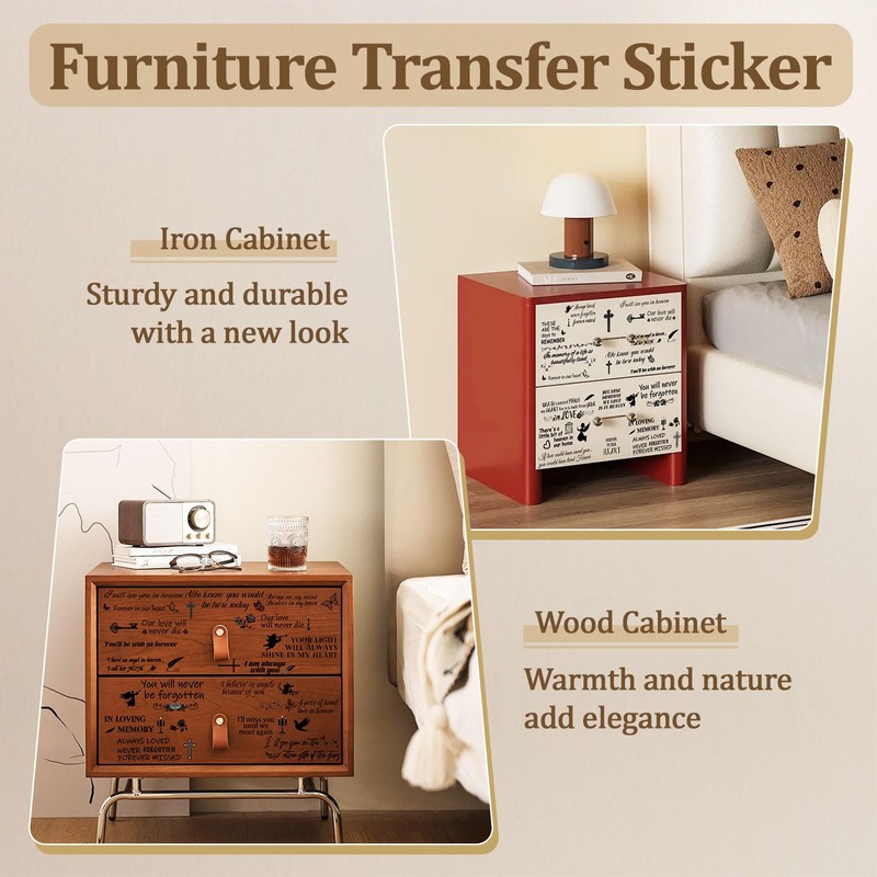 High Quality Material Furniture stickers are made of high quality PVC material, waterproof and durable, with clear patterns, strong adhesion.