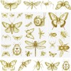 WANDIC 3 Sheets Rub on Transfer Stickers, Gold Decorative Furniture Transfer Decal Butterfly Bee Customized Design Strong Adhesion, for Postcard Scrapbooking Decorations,15 * 30cm