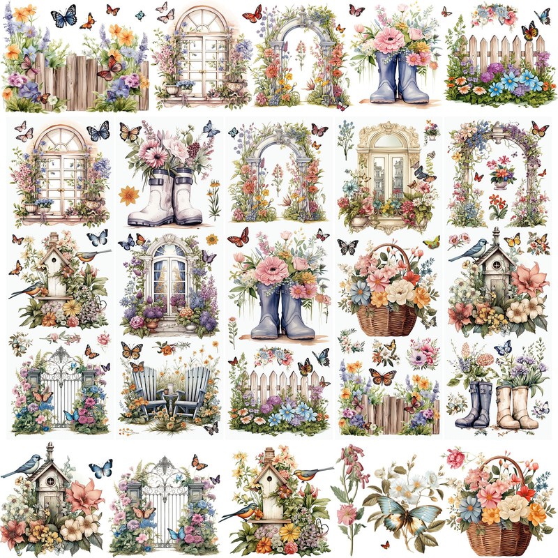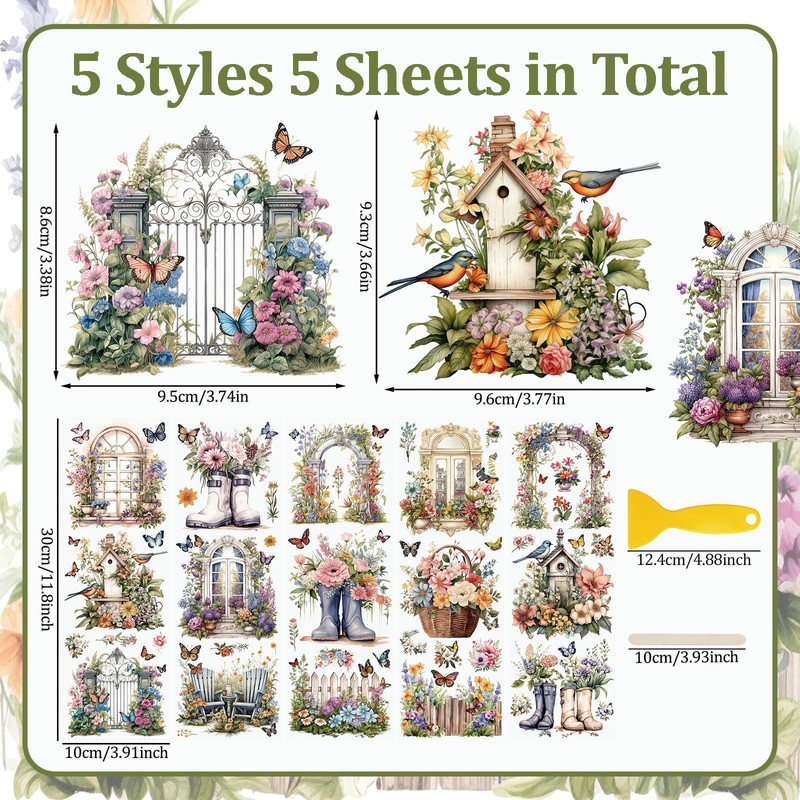 - Package Include: 5 sheets vintage flower & scenery theme rub on transfer stickers. Size: 10*30cm