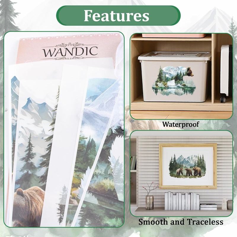 WANDIC 6PCS Rub On Transfer Stickers, Forest Ursus arctos Transfer Decals for Furniture Refrigerator Cabinet Scrapbook Window, 15*30cm