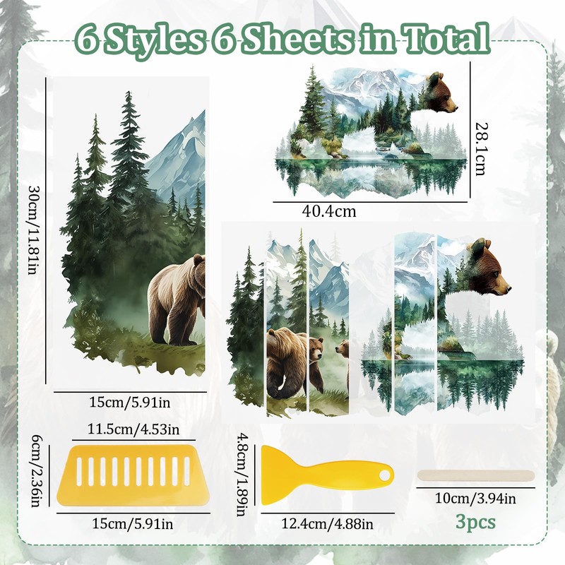 - SIZE AND PACKAGE: Package comes with 6 different forest brown bear stickers, each transfer sticker is 15*30 cm/5.91*11.8 in.
