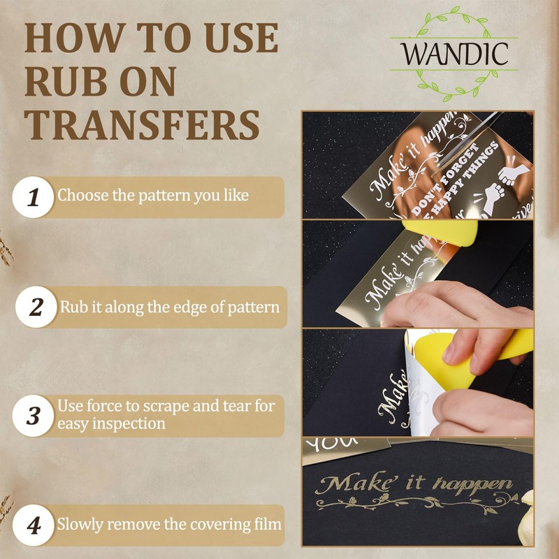 WANDIC 3 Sheets Gilding Rub On Transfer Stickers, Incentive Theme Decals Waterproof Stickers DIY Decals for Decoration,10*30cm