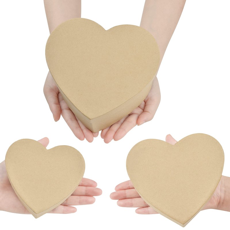 Attention to sizes : Set of 3 heart mache box is of 3 different sizes: 3.93*1.69inches, 4.92*2.36inches, 6.1*2.9inches. Product in the picture may look larger than the actual, please pay attention to sizes.