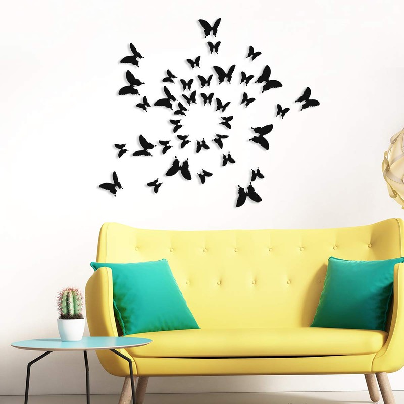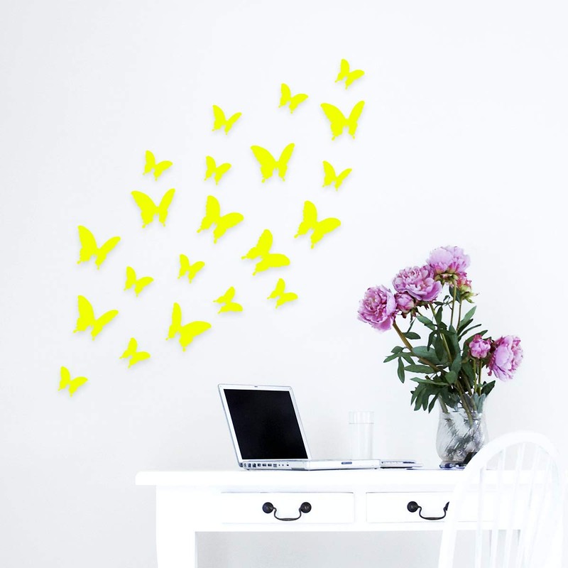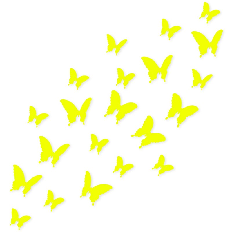 Wandkings Schmetterlinge im 3D-Style in NEON GELB, 12 Stück, Wanddekoration mit Klebepunkten zur Fixierung