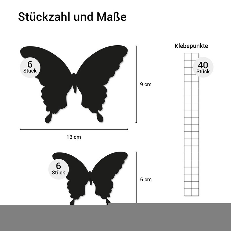 - Dimensions: 6 butterflies 130 x 90 mm, 6 butterflies 90 x 60 mm