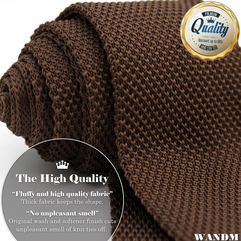 WANDM Men's Pointed Knit Tie Necktie Width 2.75 inches Washable Solid Color Brown