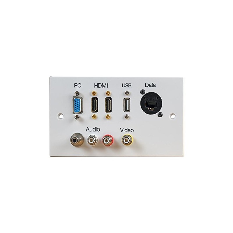 Wandplatte, 2G, 2HDMI, VGA, USB A, AV, RJ45, Wandplatten und Bodenboxen, Audio-Visual-Kabel, 1 Stück