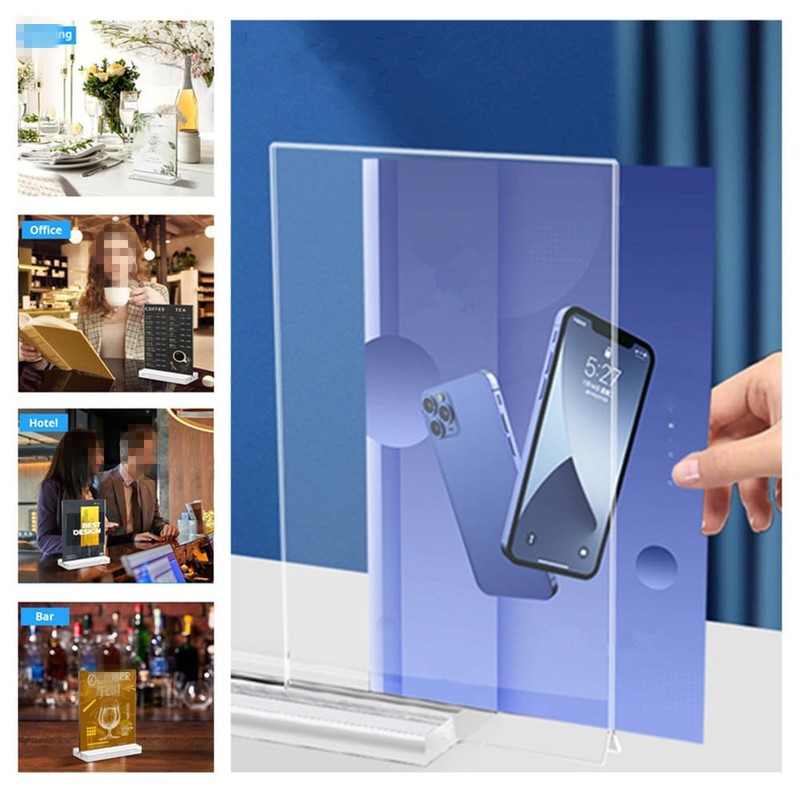 - Stabile T-Form: Acryl Tischaufsteller kann fest auf flachen Oberflächen wie Tischen und Regalen, ideal für Büros, Restaurants, Läden und Messen.