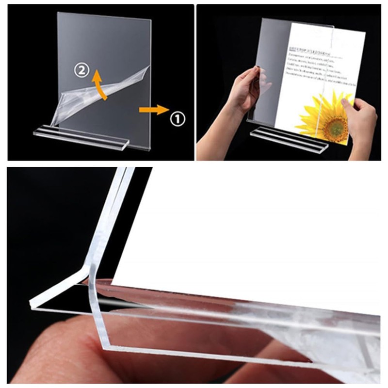 - Stabile T-Form: Acryl Tischaufsteller kann fest auf flachen Oberflächen wie Tischen und Regalen, ideal für Büros, Restaurants, Läden und Messen.