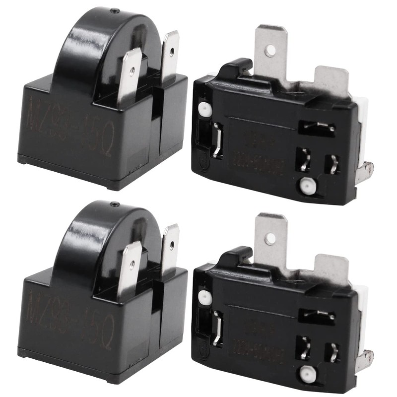 WANGCL 2PCS Compressor Start Relay 3Pin 15Ohm +2PCS Compressor Overload Protector 1/4HP for Refrigerator Repair
