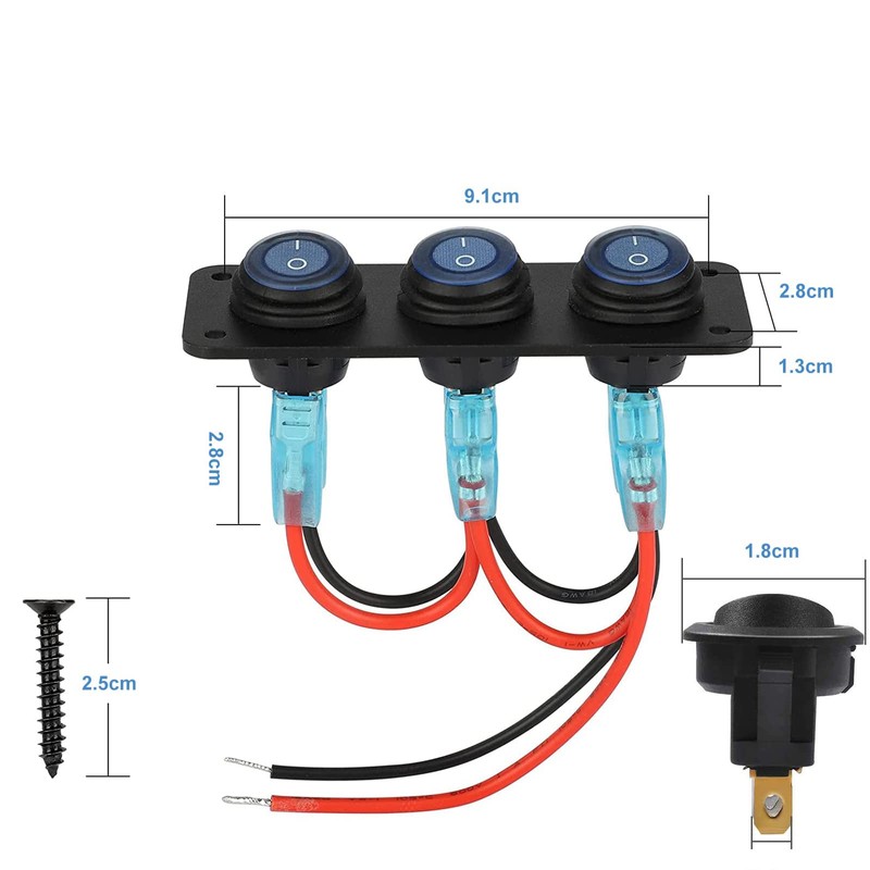- Application:Suitable for 12V-24V cars, caravans, caravans, trailers, buses, boats, yachts, ships, etc., for switch panel modification.