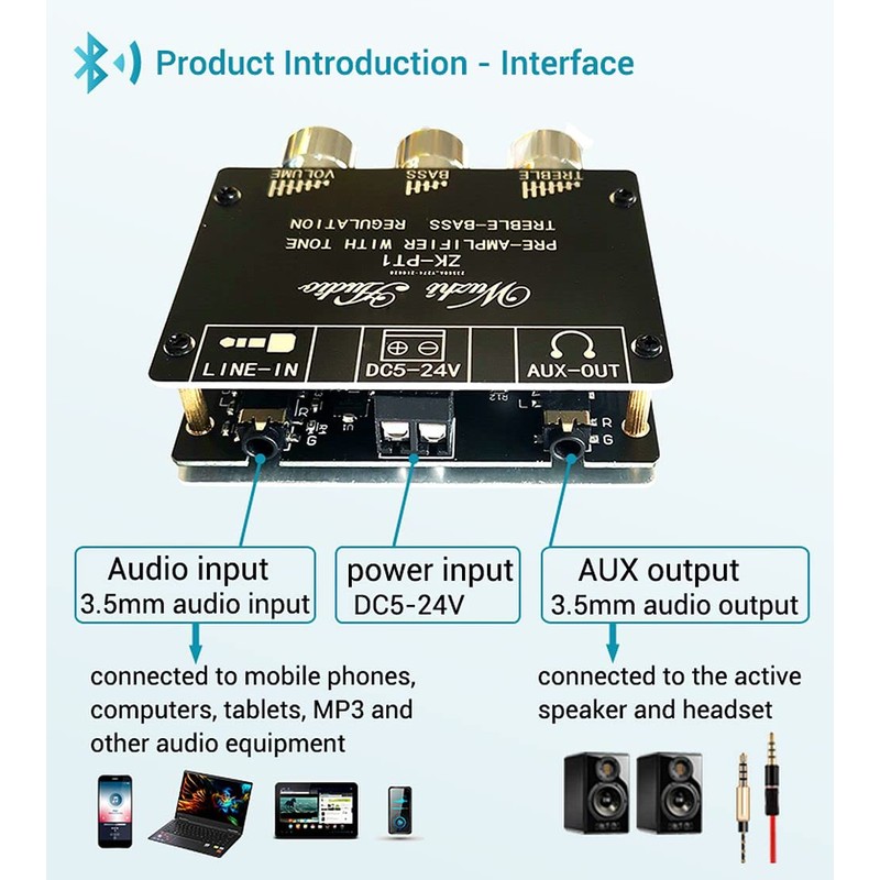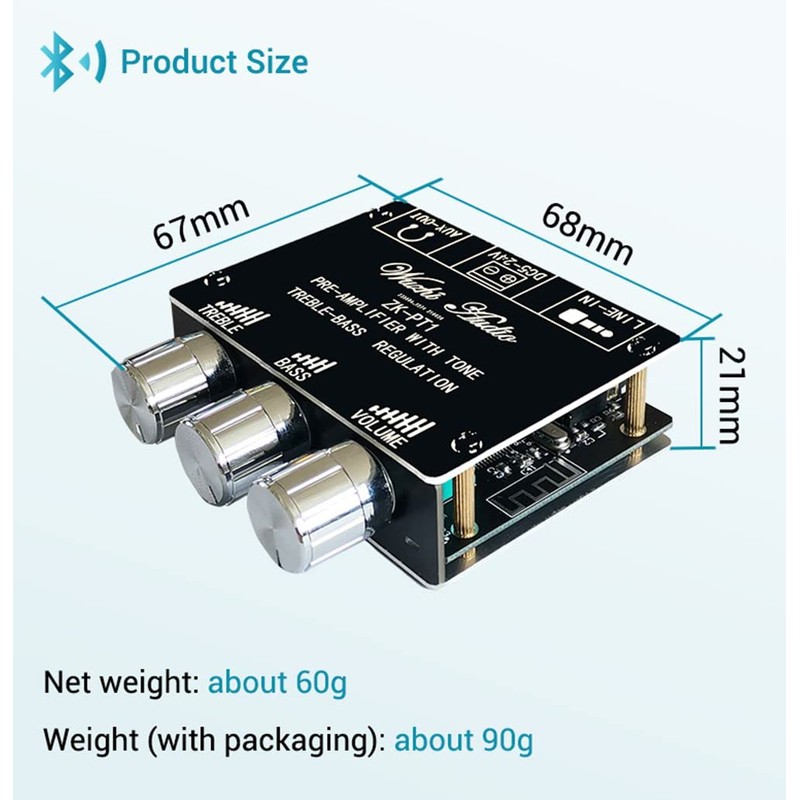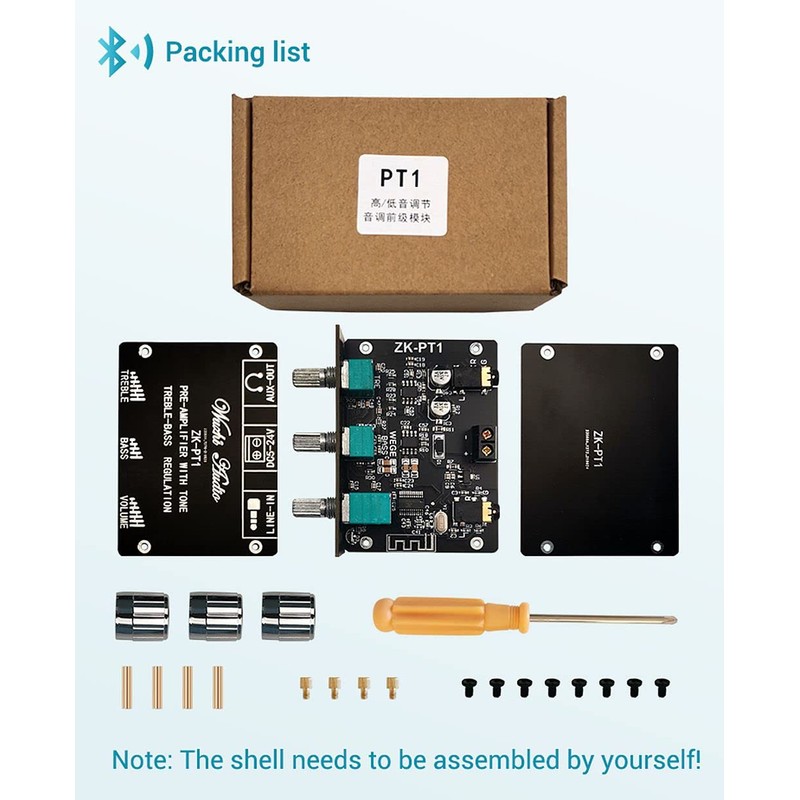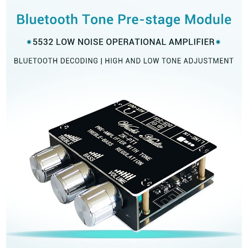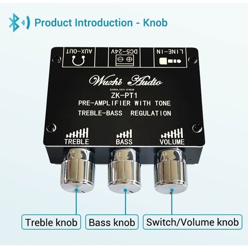 WANGCL Bluetooth 5.0 Audio Receiver Decoder Stereo Tone Board ZK-PT1 Volume Controller Treble Bass Tonal Preamp Amp Knob For Amplifier