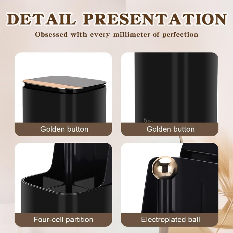 - 【Exquisite Automatic Lifting Design】: This make - up brush holder organizer features a unique press - type design. Gently press the lid, and watch as your makeup brushes automatically rise, presenting themselves effortlessly. After use, a simple press on the middle ball completes the storage, making it a seamless addition to your make - up organizers for vanity collection.