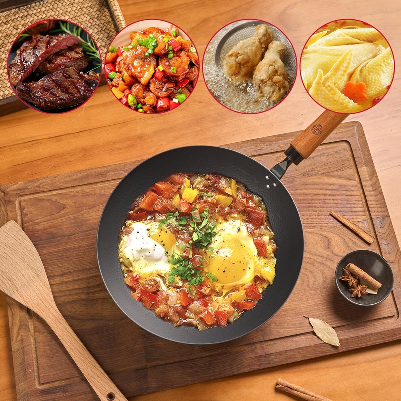- Versatile:The deep Chinese frying pan can sauté, fry, boil and stew, solving all basic cooking needs