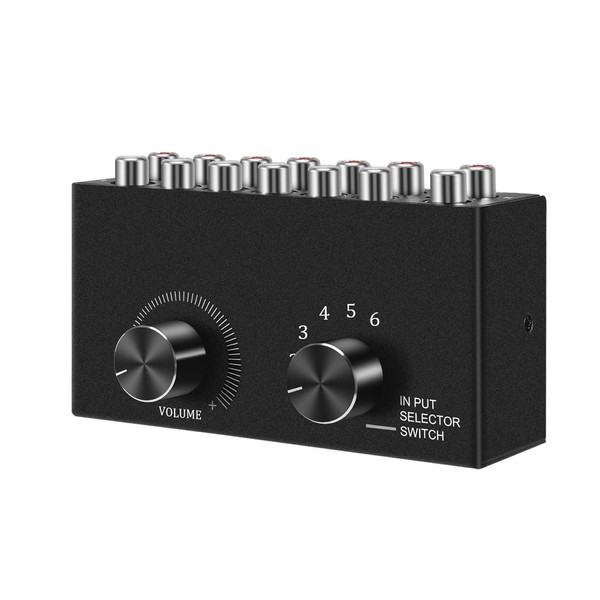 Wanjorlay 6 in 1 Out L/R Stereo Audio Switcher with Mute Button Portable Stereo Audio Switch Audio Splitter