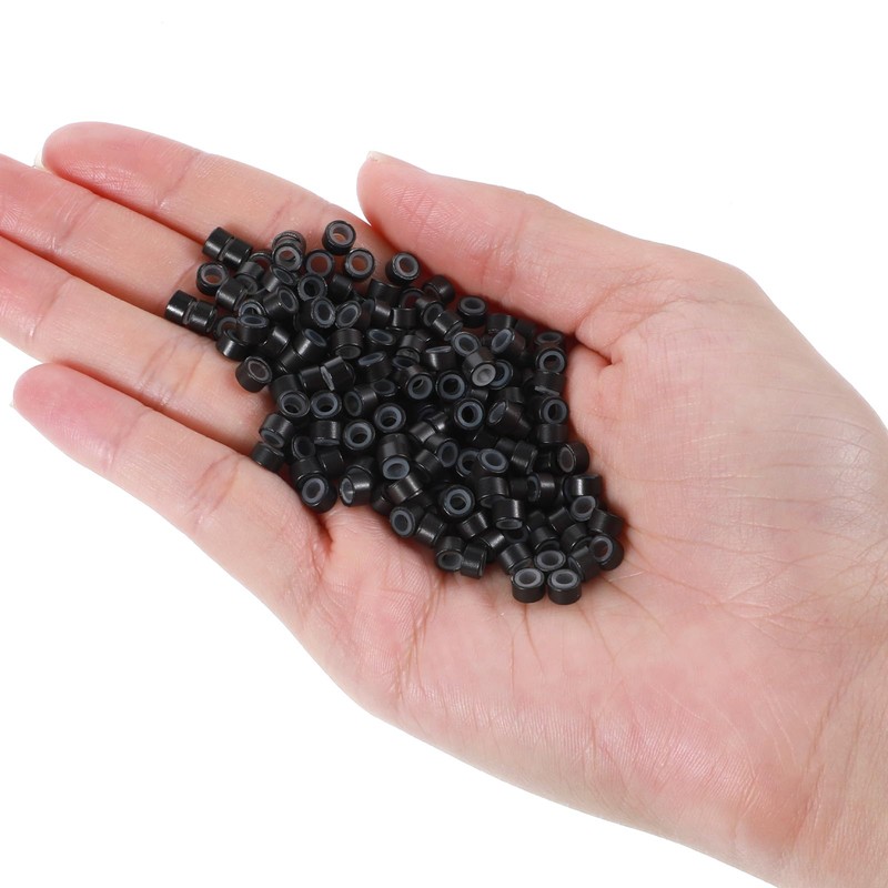 Wanmu 1000 Pcs 5mm Black Hair Tinsel Beads, Hair Extension Beads, Microlink Rings, I Tip Hair-Extension Bead with Silicone Lined for Secure Hold