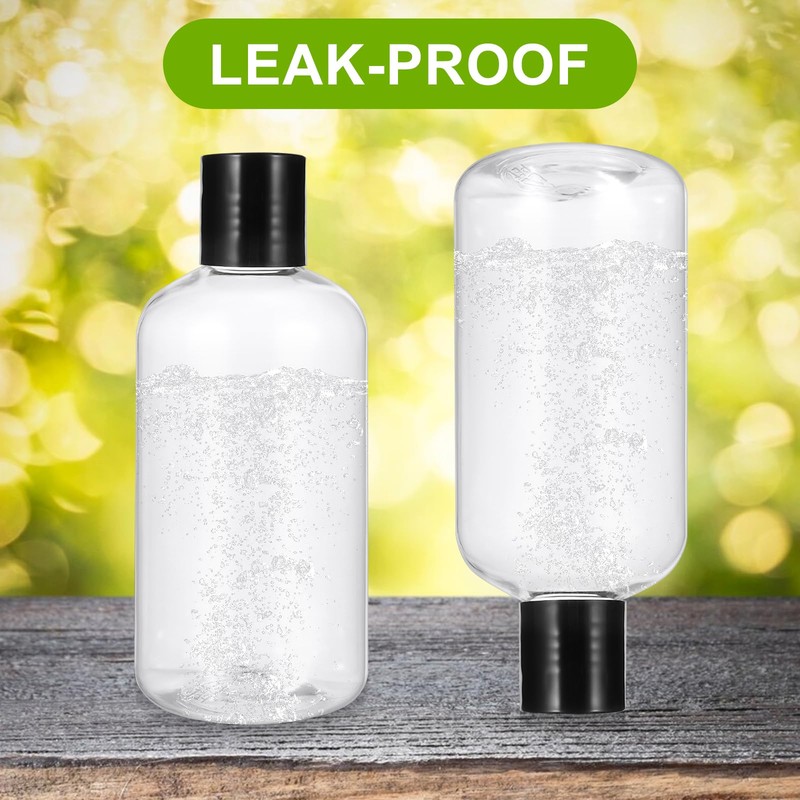 - Leak-Proof Design: Our travel toiletry bottle features a unique design with a black disc cap that requires squeezing the bottle to dispense the liquid. This design helps prevent leaks and spills, making them ideal for travel.