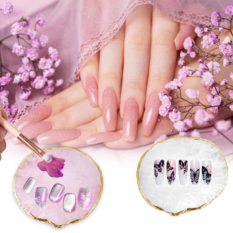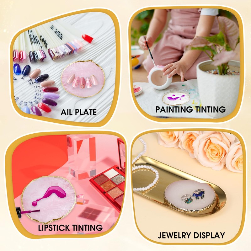 - Eco-Friendly Resin Material: Crafted from premium resin, this nail art palette is both environmentally conscious and built to last. The palette's smooth, gilded edges guarantee a scratch-free experience, whether you're blending nail polish or gel paint for your artistic nail designs.