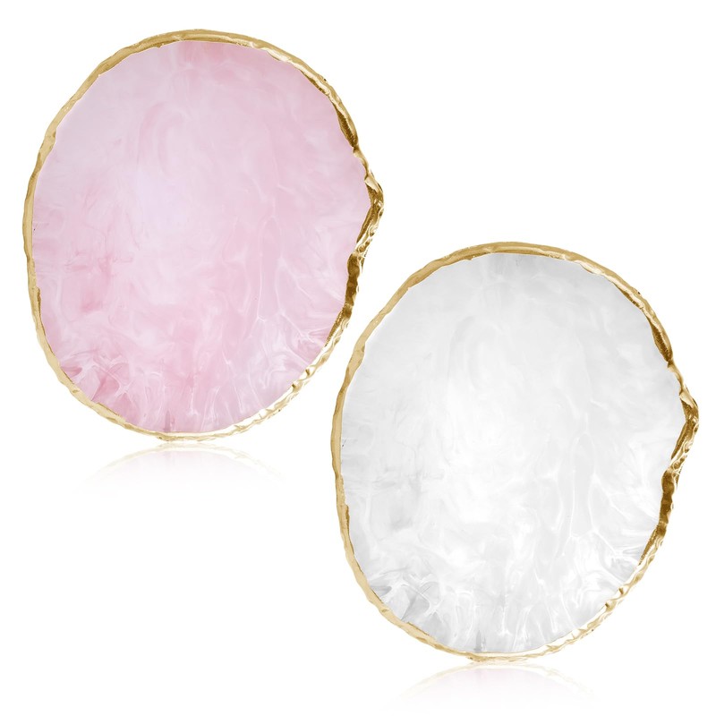 Wanmu 2Pcs Resin Nail Art Palette, Nail Painting Mixed Color Palette, Gilded Edge Nails Gel Color Makeup Display Board Pallet, DIY Nails Gel Makeup Display Board Pallet (White & Pink)