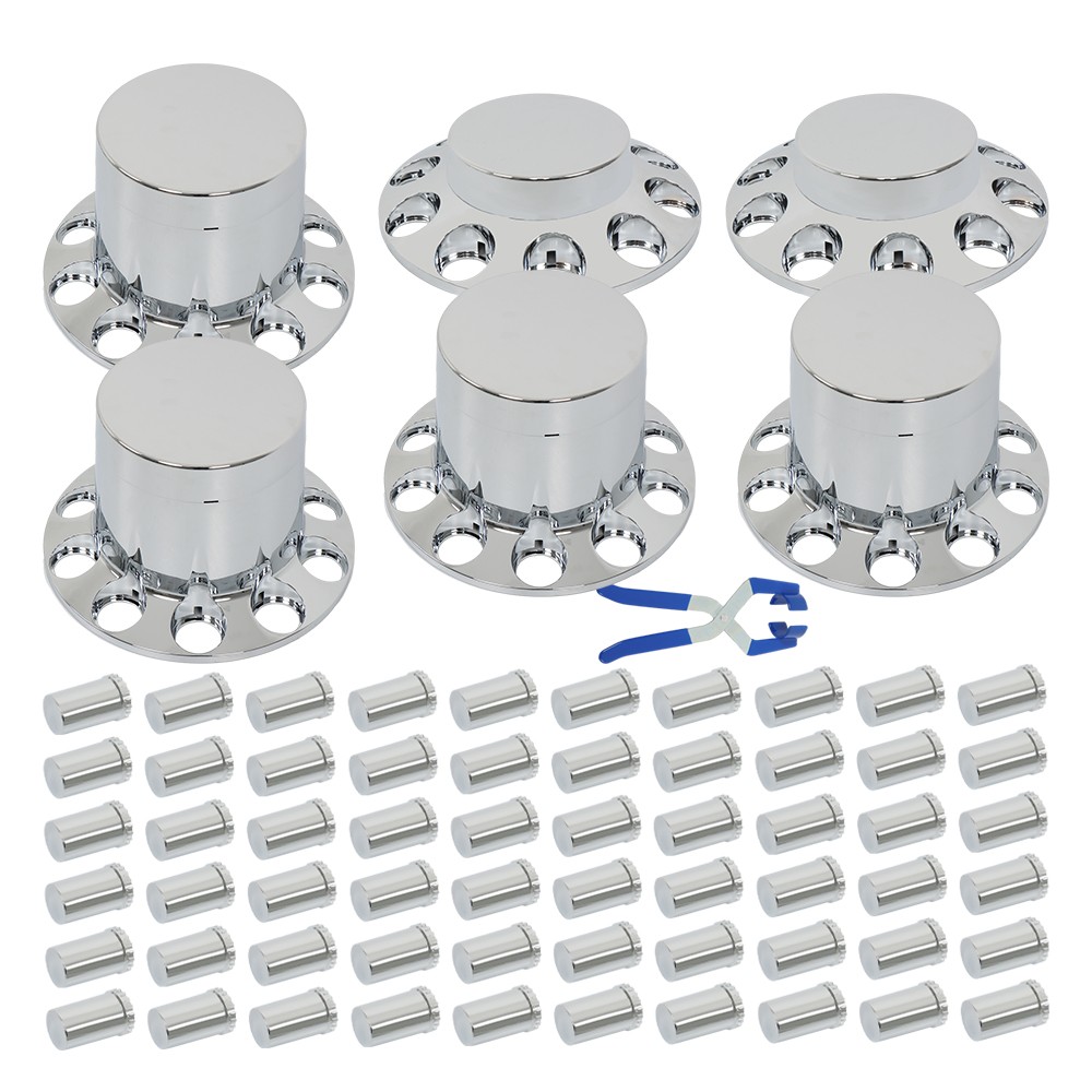 Chrome Hub Cover Semi Truck Wheel Axle Covers Kit 33mm Nut Rear & Front Complete